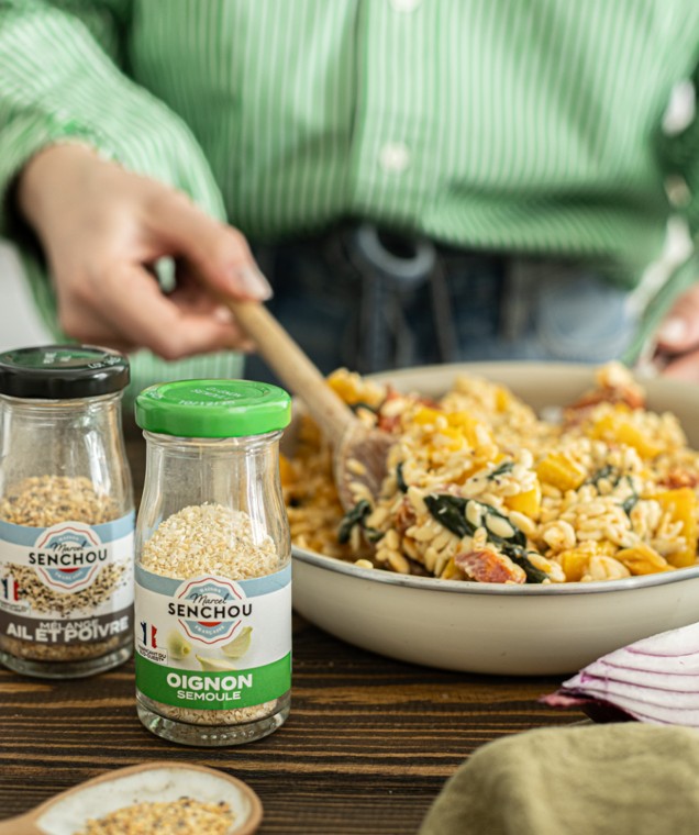 Un bon repas en famille sans le moindre effort ? C’est ce que vous propose notre équipe avec l’oignon semoule. Cet oignon déshydraté en poudre se substitue aux oignons dans n’importe quelle recette. Si ce flacon ne vous remplace pas complètement en cuisine, il offre au moins l’avantage de vous éviter de couper les oignons. Gagner du temps et ne pas pleurer en les tranchant, en voilà une jolie promesse ! Pour profiter de toute la saveur de l’oignon semoule, vous pouvez l’utiliser dans une vinaigrette. Quelques cuillerées peuvent aussi être ajoutées à un plat mijoté, pour une réhydratation en douceur.